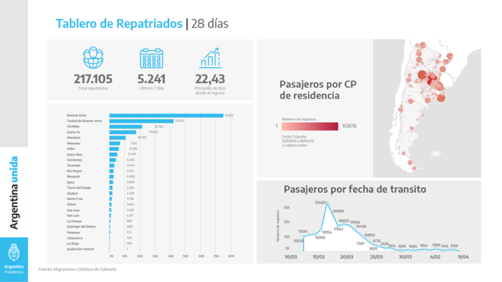 El presidente Alberto Fernández presentó los datos de turistas repatriados en los últimos 28 días y a la tierra colorada regresaron 7121 personas de diferentes países del mundo y registra, hasta el momento, sólo 3 casos con Covid 19.